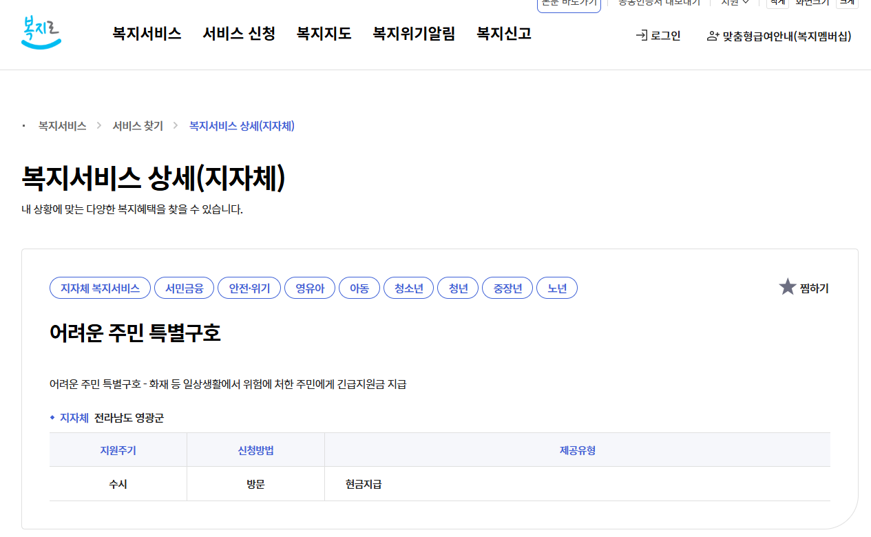 - 지원 내용: 현금 및 현물 지원, 긴급 주거비, 의료비, 교육비 등 다양