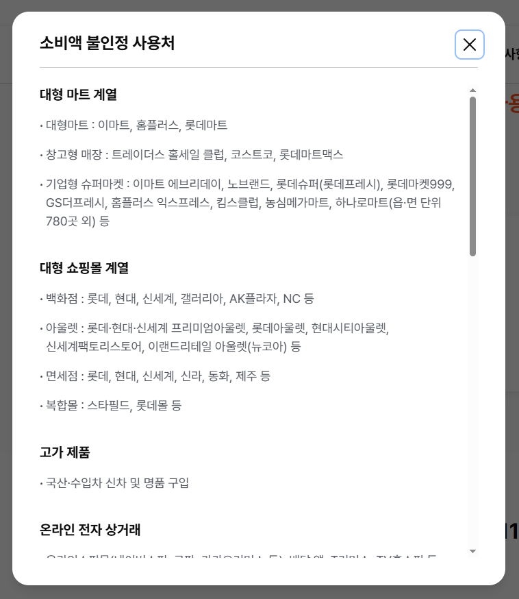 - 대형마트·온라인몰 결제 제외