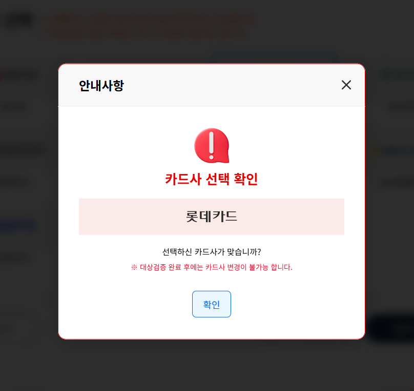 - 신청 후 카드 변경은 불가능하므로 신중히 선택할 것
