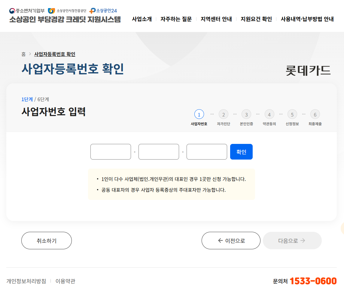 - 문의는 부담경감 크레딧 콜센터(1533-0600)나 소상공인시장진흥공단(1533-0100)으로 하면 됨