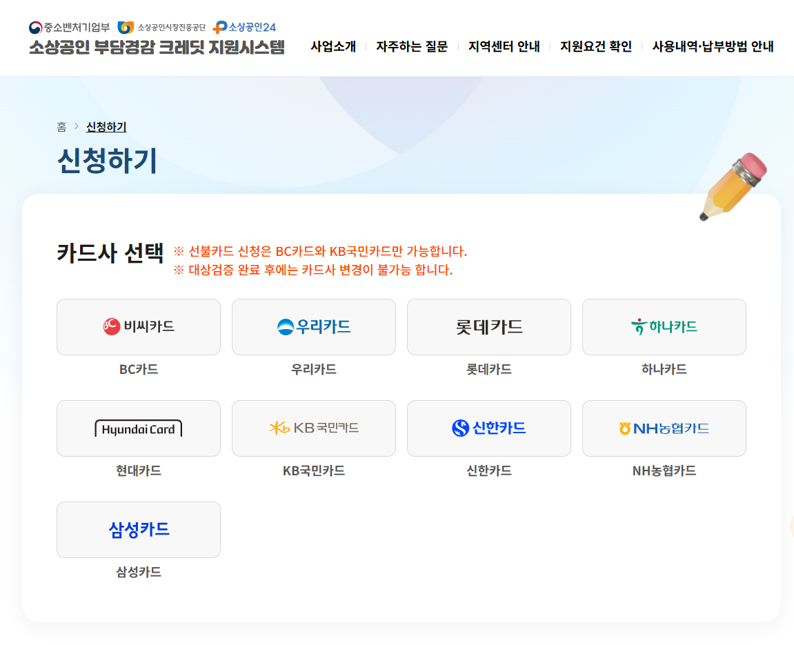 - 본인이 사용하는 신용·체크카드 중 지원 대상 카드사를 선택